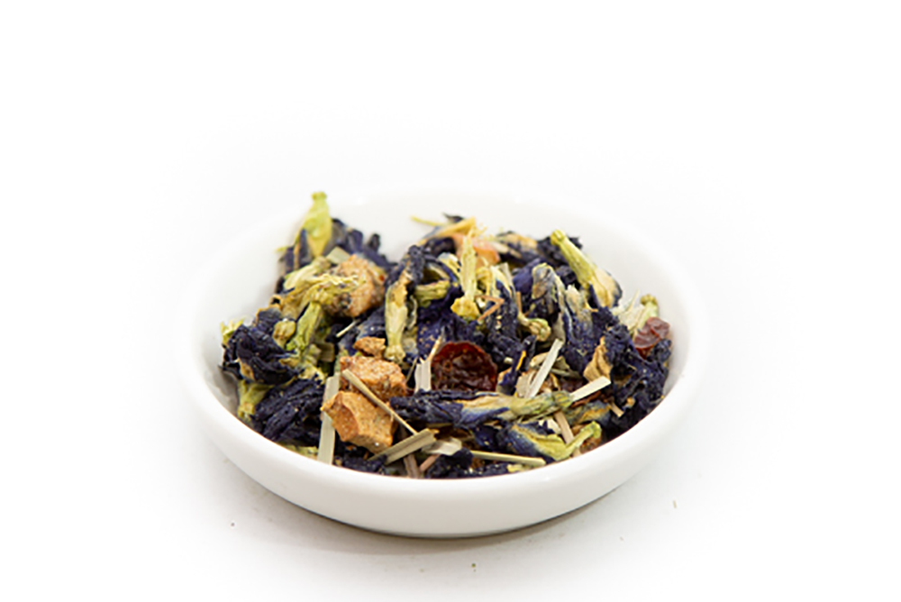 An herbal blend with a butterfly pea flower base. This color-changing tea (just add a squeeze of lemon) is fruit-forward, with flavors of kiwi, apple, and blueberry.Brewing Suggestions: We recommend using spring or filtered water. Heat to 175F. Use 2.5g of tea for 12 oz of water. Steep 3-4 minutes.
